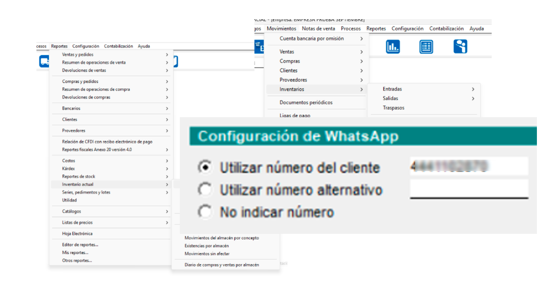 El sistema permitirá enviar mensajes y/o documentos (PDF, XML, y/o ZIP) a los clientes y proveedores a través del número de celular por medio de la WhatsApp, la opción para el envío por WhatsApp estará disponible para los siguientes tipos de documento: